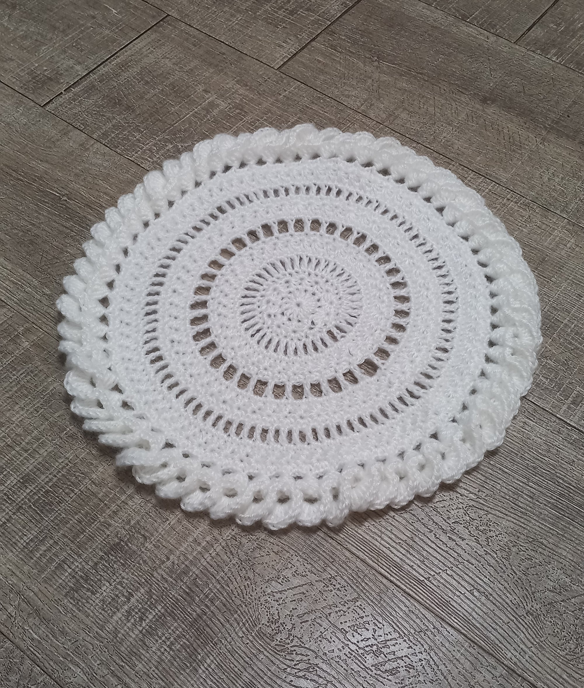 Ce napperon blanc, à la fois décoratif et fonctionnel, est idéal pour sublimer une plante ou une table grâce à son design délicat et intemporel, apportant une touche trés douce au crochet et d’élégance à votre intérieur.